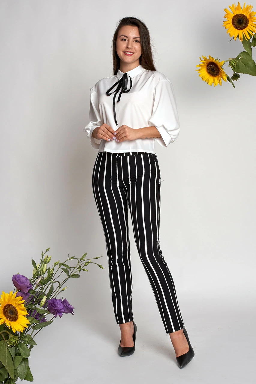 Оригинальная блуза выполнена из ткани софт высокого качества. Воротник украшен маленьким черным бантиком, что придает образу элегантности. В тандеме с классическими брюками или строгой юбкой блуза создает утонченный деловой лук.