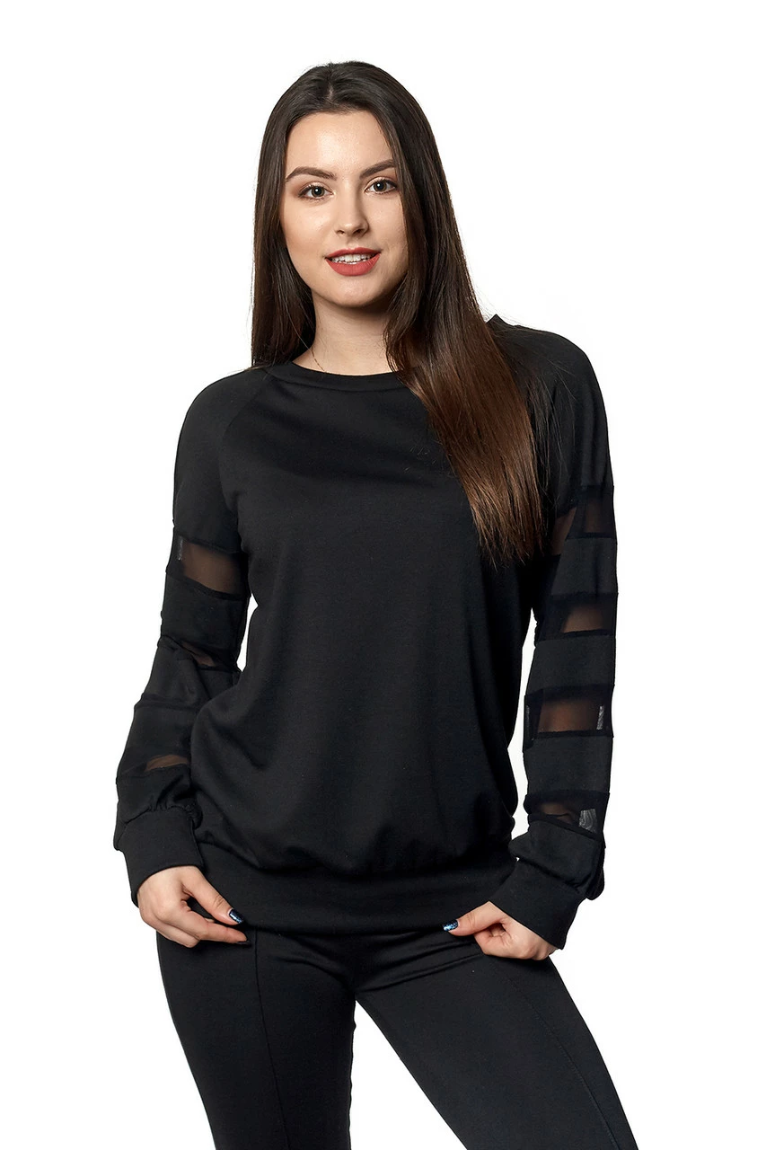 Стильная женская кофта выполнена из ткани трикотаж Lacosta высокого качества. Кофта свободного покроя, рукава с вставками сетка, на манжетах. Кофта будет великолепно смотреться с юбками, брюками, джинсами или леггинсами. Варианты комбинаций могут быть различными.
