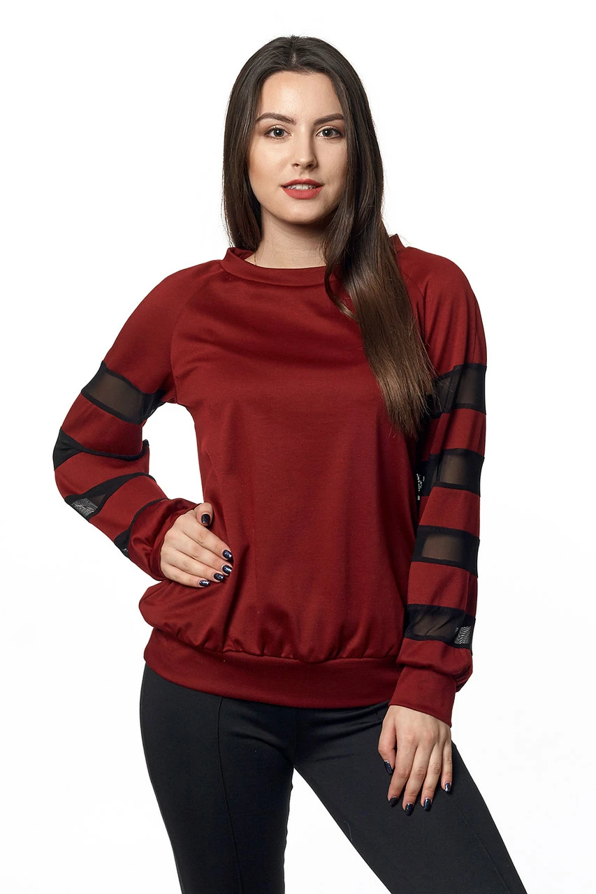 Стильная женская кофта выполнена из ткани трикотаж Lacosta высокого качества. Кофта свободного покроя, рукава с вставками сетка, на манжетах. Кофта будет великолепно смотреться с юбками, брюками, джинсами или леггинсами. Варианты комбинаций могут быть различными.