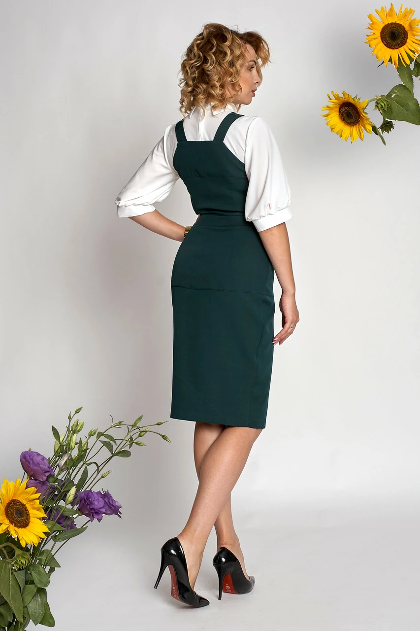 Комплект двойка (сарафан и блуза). Сарафан пошит из ткани высокого качества костюмка, блуза из ткани софт. Силуэт изделия приталенный. Крой сарафана прямой, что подчеркивает все достоинства фигуры. Такая модель сарафана идеально подойдет для офиса, а также для праздников.