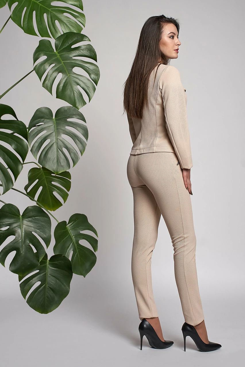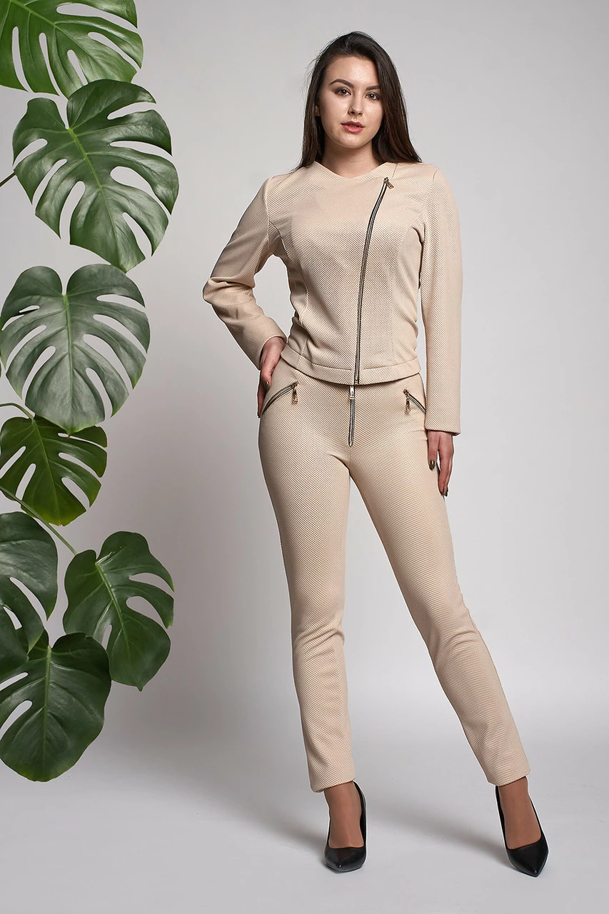 Женский костюм Керол выполнен из ткани кукуруза высокого качества. Пиджак с длинным рукавом, слегка укорочен, застегивается на молнию. Брюки на высокой посадке, застегиваются на молнию и пуговичку. Такой костюм отлично подходит для носки на работу или выхода в свет. В нем Вы себя будите чувствовать комфортно и модно.