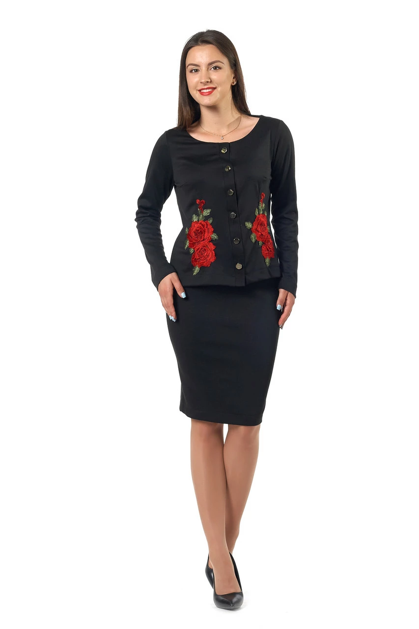 розы, пришиты на передние полочки изделия. Такой костюм –