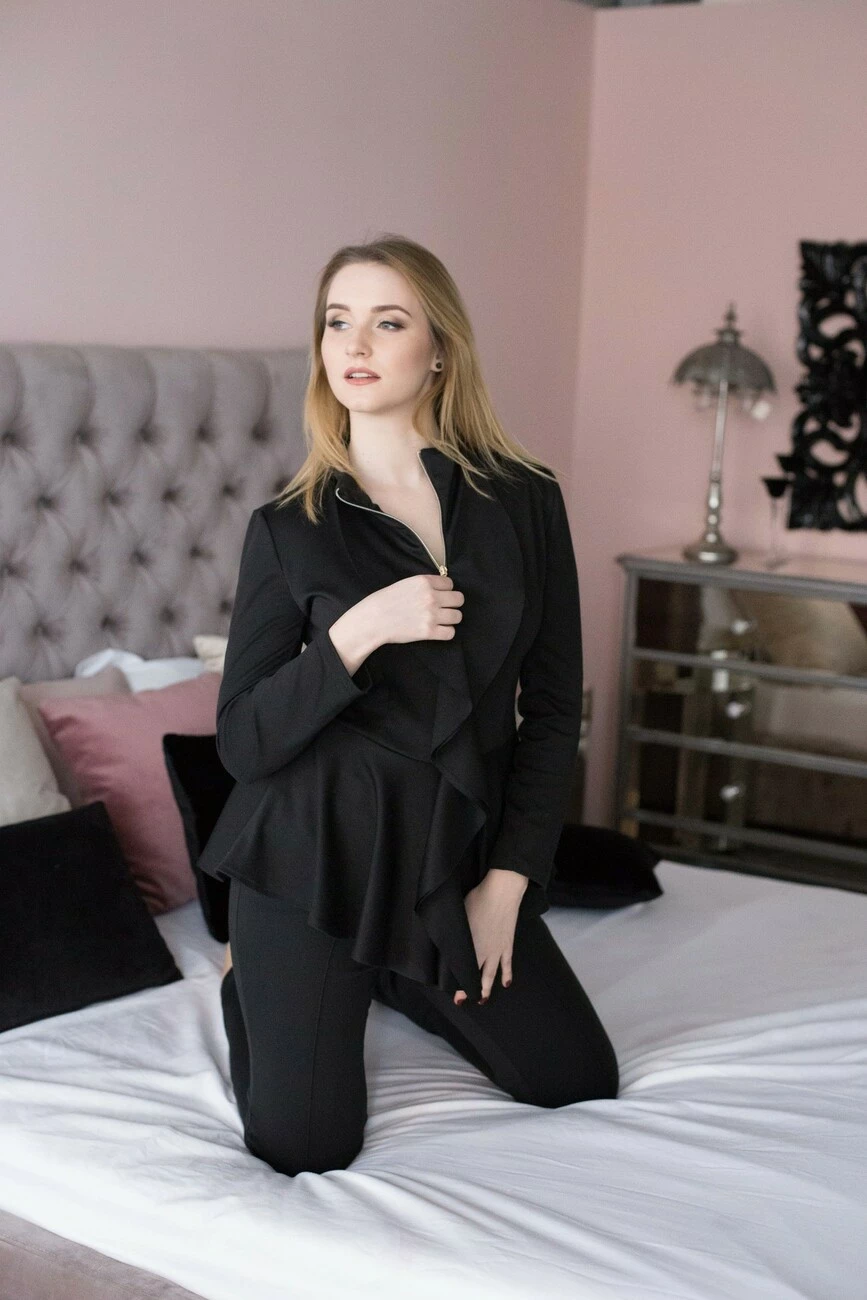 Стильный женский костюм Мейди состоит из жакета и брюк, выполнен из трикотажа Lacosta высокого качества. Пиджак слегка удлиненный с баской и длинным рукавом, застегивается на молнию. Брюки зауженные, с идеально отутюженными стрелками. Костюм отлично смотрится на любой фигуре, специальный крой скрывает недостатки и удачно подчеркивает достоинства. Такой костюм должен быть в гардеробе каждой женщины, Вы будите выглядеть очень женственно и модно. Подойдет не только на каждый день, но и для разных мероприятий.