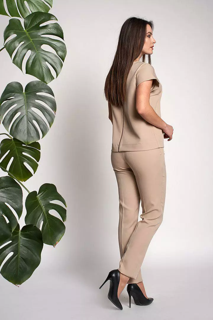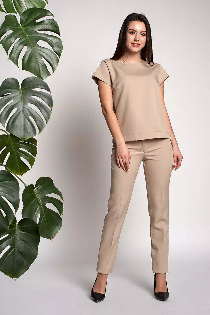 Стильный и современный костюм Нейл состоит из кофточки и брюк, выполнен из ткани креп-костюмка высокого качества. Кофточка прямого кроя с коротким рукавом, сзади по всей длине застегивается на золотистую молнию. Укороченные модные брючки со стрелкой, с высокой посадкой застегиваются на пуговицу и молнию. Такие брюки делают Вашу фигуру очень женственной, подчеркивают узкую талию и округлую линию бедер. Костюм очень модный и практичный.