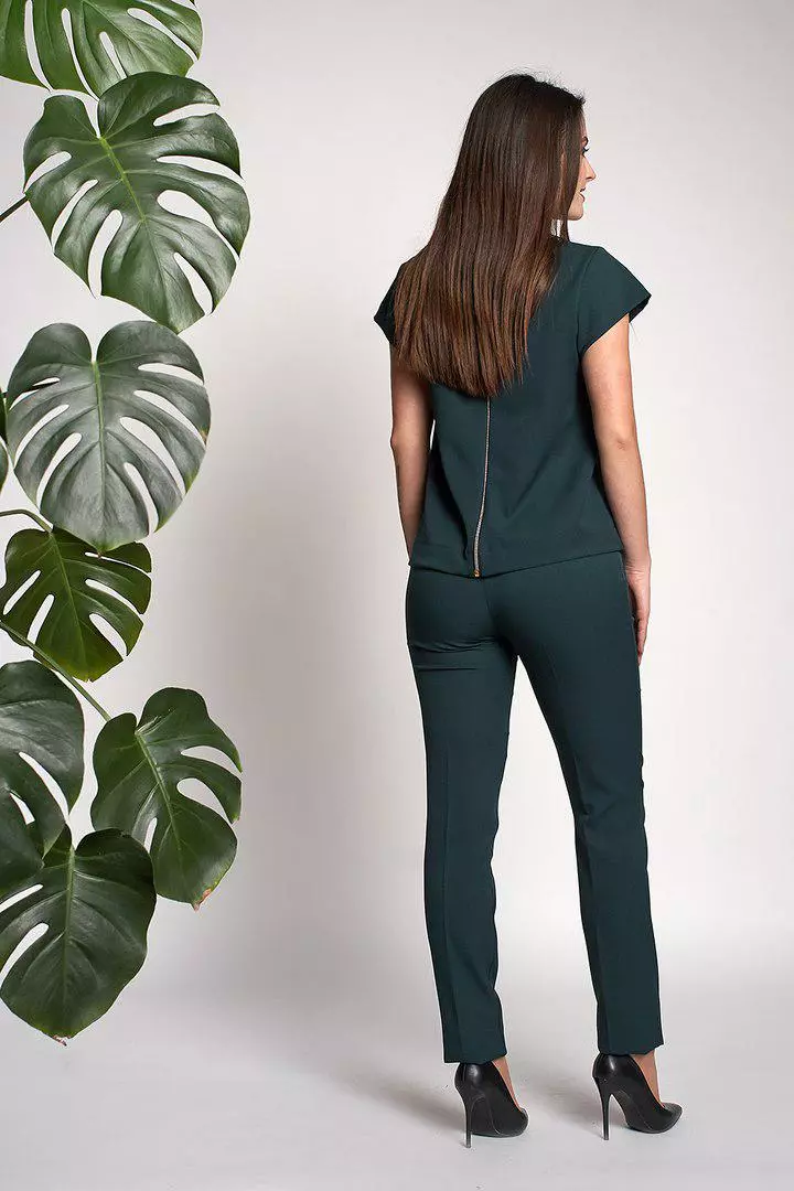Стильный и современный костюм Нейл состоит из кофточки и брюк, выполнен из ткани креп-костюмка высокого качества. Кофточка прямого кроя с коротким рукавом, сзади по всей длине застегивается на золотистую молнию. Укороченные модные брючки со стрелкой, с высокой посадкой застегиваются на пуговицу и молнию. Такие брюки делают Вашу фигуру очень женственной, подчеркивают узкую талию и округлую линию бедер. Костюм очень модный и практичный.