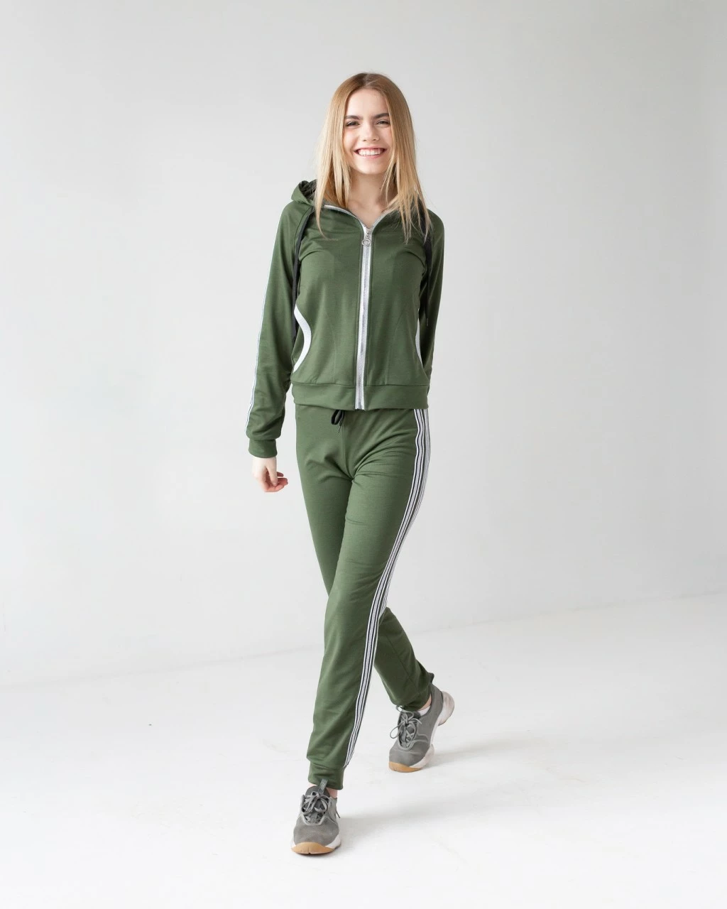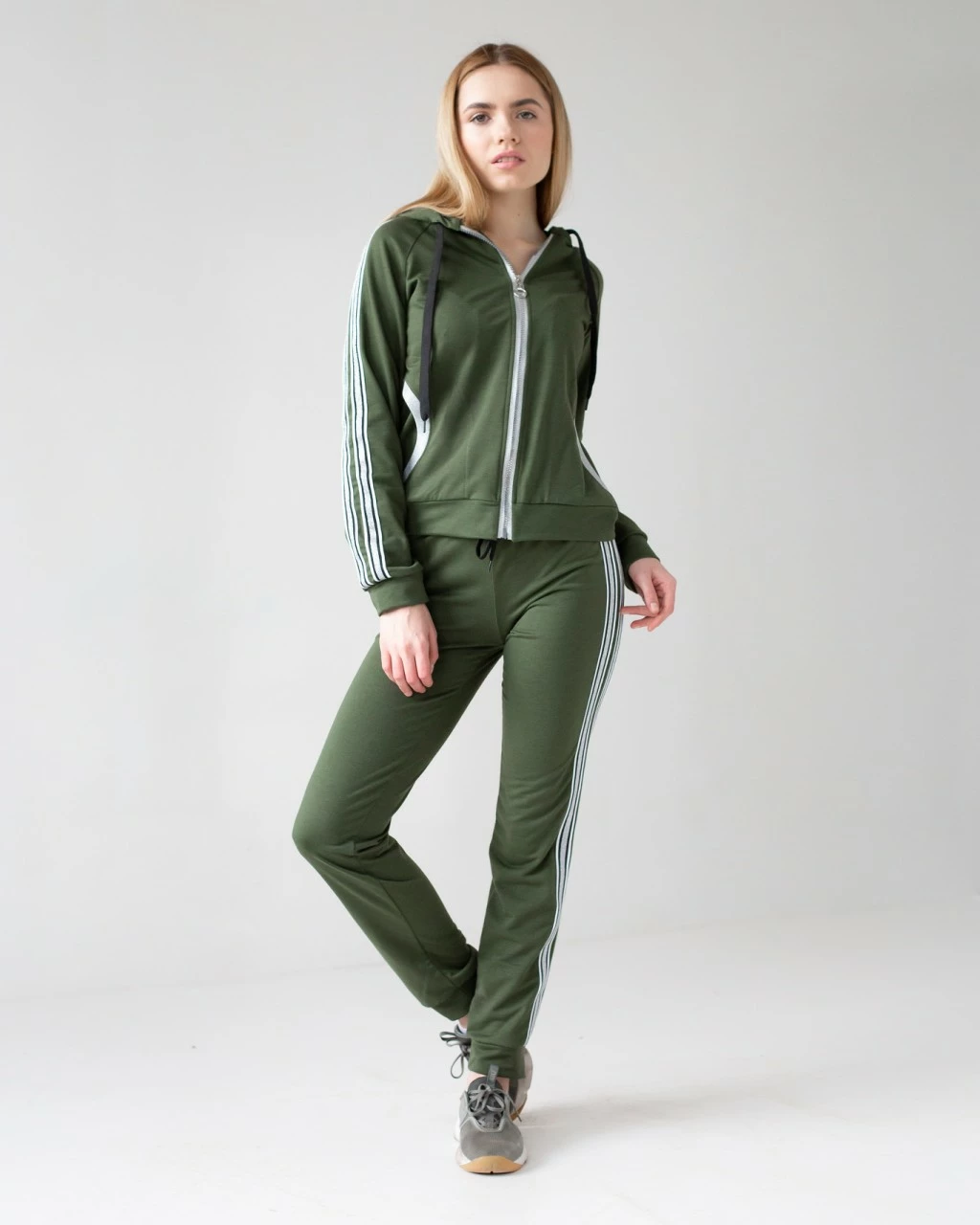Женский спортивный костюм Ривер выполнен из ткани двунитка высокого качества. Костюм состоит из кофты и брюк. Кофта с длинным рукавом, застегивается на молнию, по бокам карманы, есть капюшон. Брюки пояс на резинке, снизу на манжетах, по бокам карманы. Костюм отлично подойдет как и для занятий спортом так и для ежедневной носки. В нем Вы будете себя чувствовать легко и удобно.Сочетать с любой спортивной обувью .