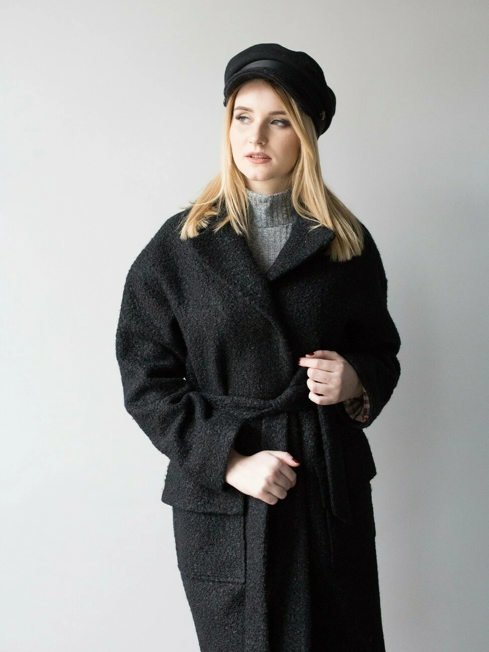 Женское пальто Роуз выполнено из ткани шерсть Букле. Пальто миди, полуприталенный крой универсален для любого типа фигуры. Накладные карманы дополняют модель. Пояс в комплекте, пальто на подкладке, застегивается на потайные пуговицы. Сезон весна-осень. Можно сочетать с обувью на каблуке и на низком ходу, тем самым создавая свой стиль.