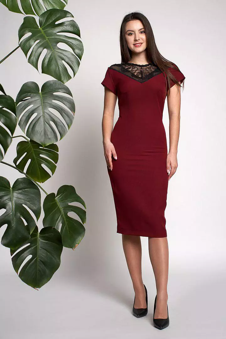 Женственное платье Аделина выполнено из ткани креп-костюмка высокого качества. Платье длиной миди, с коротким рукавом, вставкой из гипюра, приталенного силуэта.