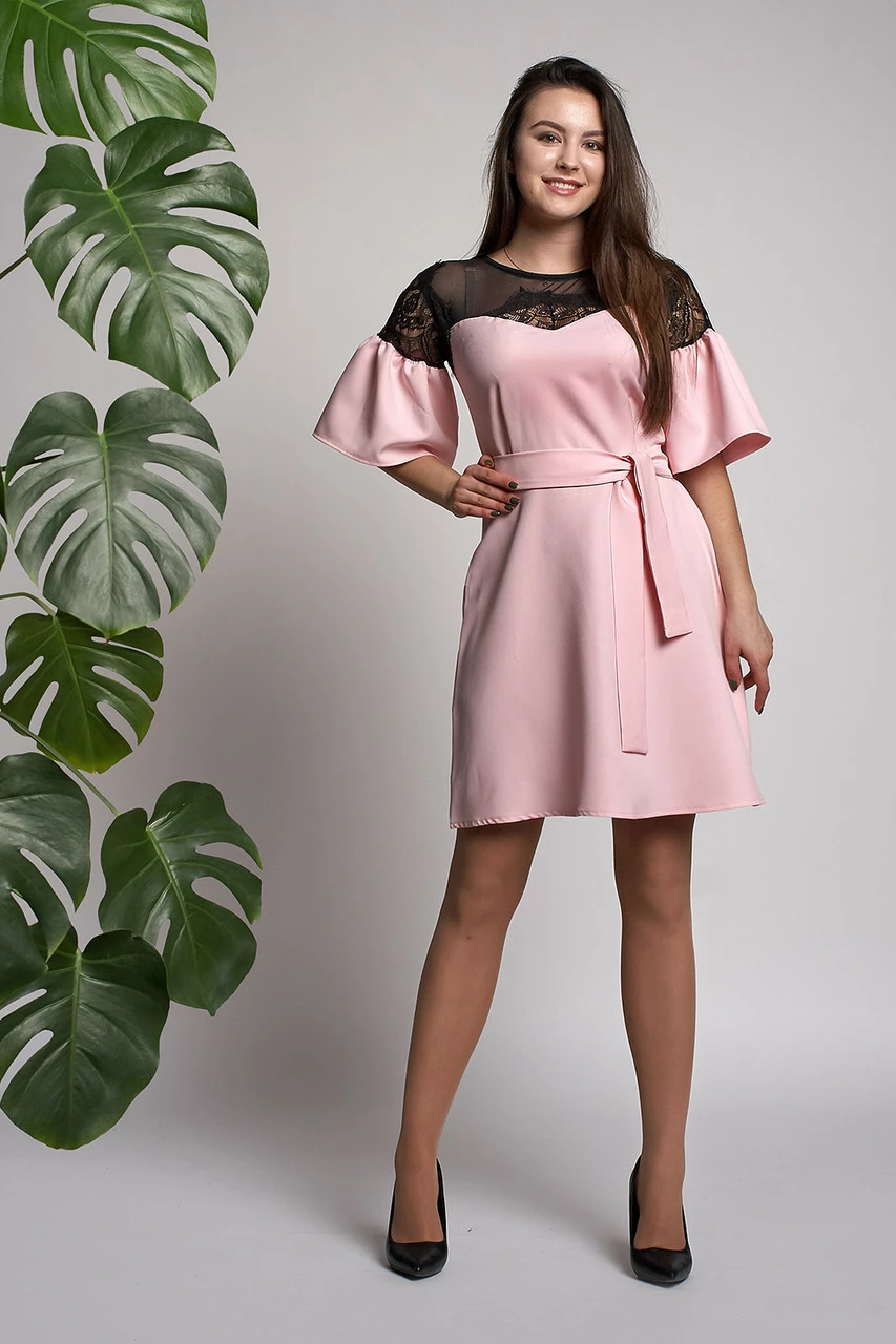 Модное женское платье Афина выполнено из ткани креп-костюмка высокого качества. Платье длинной до колен, рукава расклешенной формы красивыми воланами. Изюминку платью придает красивая гипюровая вставка. Линию талии подчеркивает пояс, который входит в комплект. Превосходный вариант для женщин, которые стремятся выглядеть стильно в любой ситуации. Платье можно одевать как и на работу, так и для вечернего выхода в свет и официальных торжеств.