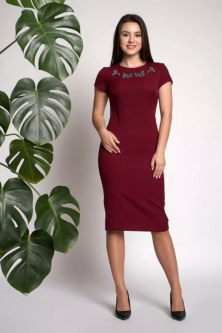 Женственное платье Мирела выполнено из ткани креп-костюмка высокого качества. Платье прямого покроя, длинной миди, с коротким рукавом. Украшением платью служат черные камни с жемчугом. Такое платье смело можно одеть на работу и на мероприятие, в нем Вы будите выглядеть женственно, стильно и красиво.