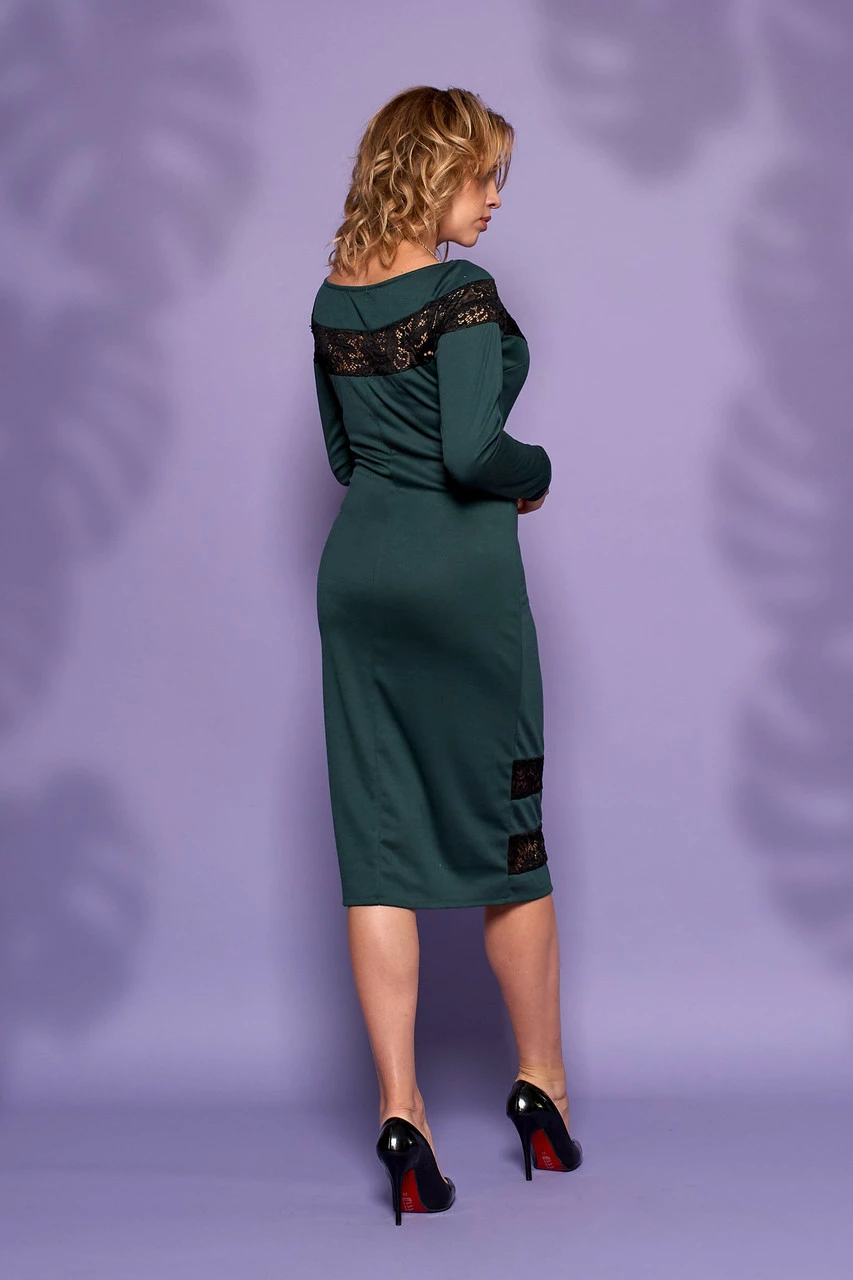 Женственное платье Регина выполнено из висококачественного французского трикотажа. Платье длины миди, прямого покроя, приталенного силуэта, с длинным рукавом. Украшают изделие вставки из нежного кружева на подоле и декольте, переходящие на плечи и спинку. Такое платье украсит Ваш образ на светском выходе или романтическом свидании, Вы несомненно будете приковывать к себе взгляды.