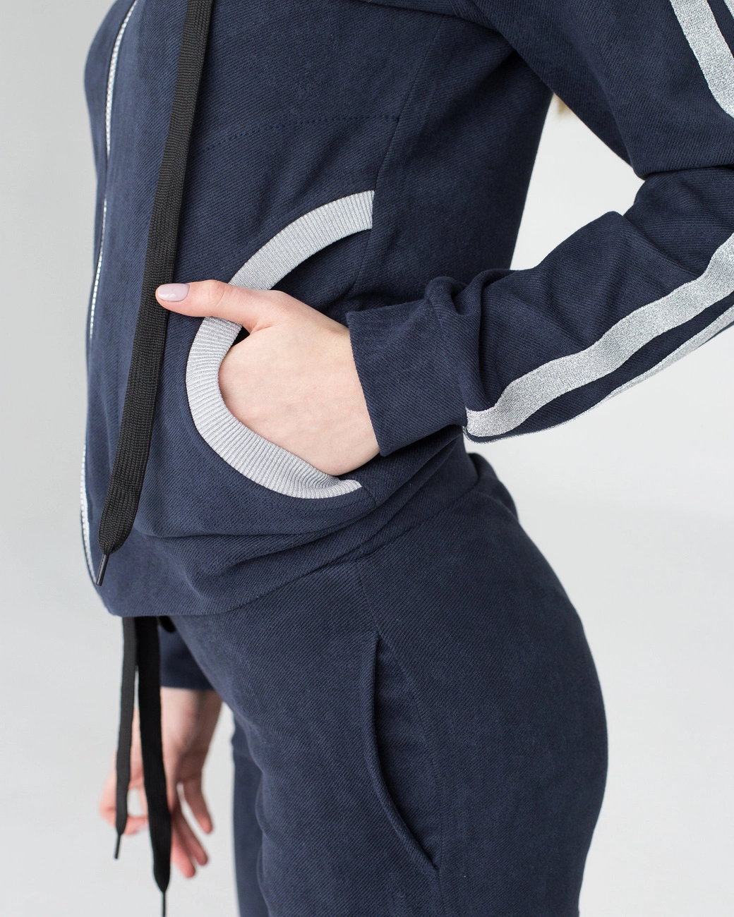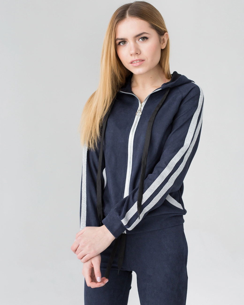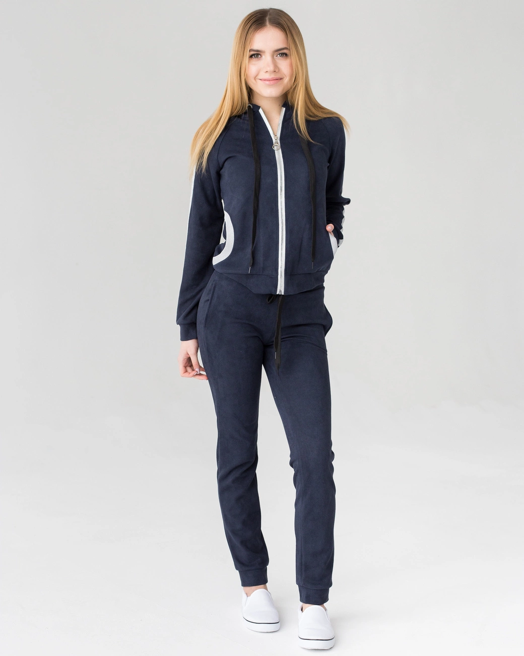 Женский костюм Билл выполнен из ткани твид высокого качества. Костюм состоит из кофты и брюк. Кофта с длинным рукавом, застегивается на молнию, по бокам карманы, есть капюшон. Брюки пояс на резинке, к низу на манжетах, по бокам карманы. Костюм отлично подойдет для ежедневной носки, прогулок, для работы. В нем Вы будите себя чувствовать легко и комфортно. Сочетать с обувью на низком ходу.